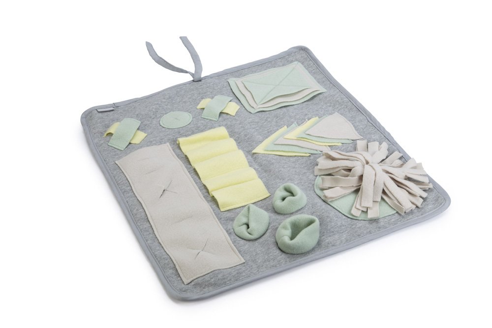 Covorașul olfactiv Beeztees Puppy Doeka Snuffelmat este o jucărie interactivă ideală pentru stimularea mentală și ocuparea timpului cățeilor. Spre deosebire de covorașele clasice cu fâșii simple, acest model dispune de structuri variate și elemente de joacă, astfel încât puiul de câine nu se va plictisi. În diferitele zone ale covorașului pot fi ascunse recompense sau crochete, iar cățelul le va găsi folosindu-și mirosul. Datorită multiplelor locuri de ascundere, recompensele pot fi plasate de fiecare dată în alt loc, ceea ce face jocul mai interesant și provocator. Această jucărie contribuie la dezvoltarea instinctului natural de căutare, îmbunătățește concentrarea și ajută la reducerea plictiselii sau a stresului. Beneficii: • Fabricat din poliester rezistent • Structuri diferite și elemente interactive • Stimulează dezvoltarea mentală a cățelului • Ideal pentru joacă interactivă și antrenament Dimensiune: • 50 × 45 cm Culoare: • Gri