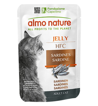 Almo Nature HFC Jelly Sardines – дополнительный монопротеиновый корм Human Grade для кошек, без глютена, сардины в желе как естественный источник Омега-3;