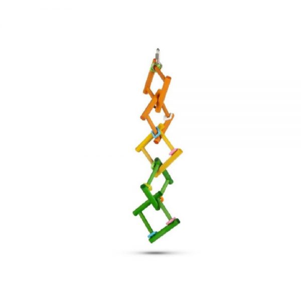 Игрушка для птиц Carres идеально подходит для того, чтобы по ней можно было залезть. Carres изготовлен из цветного дерева, обработанного нетоксичной краской. Цветные деревянные палочки, которые прикреплены друг к другу в квадратах, доставят много удовольствия вашей птице. Эту игрушку можно повесить в клетке для птиц через крючок. Настоящий актив для каждой птицы.