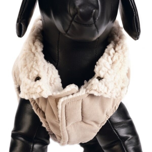 Пальто Philos имеет водонепроницаемый материал снаружи и теплую мягкую овчину внутри. Пальто легко застегивается с помощью застежек-липучек. Сверху на спине имеются красивые деревянные пуговицы, при расстегивании которых, под ними находится молния. Молнию можно открыть, чтобы прикрепить поводок к ошейнику или шлейке. У пальто имеется красивый меховой воротник, который крепится с помощью кнопок и легко отстегивается при необходимости. Можно стирать в стиральной машине при температуре 30 градусов.