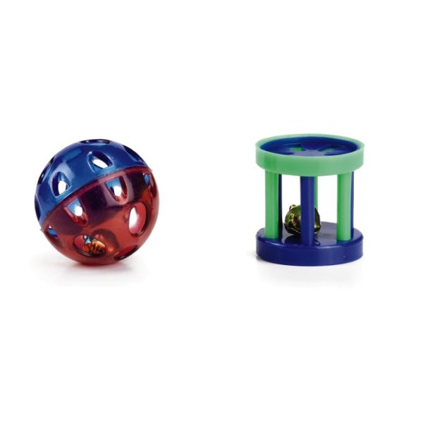 Игрушка для кошек в виде пластмассового мяча и цилиндра, которую кошка с удовольствием будет катать по полу. Колокольчик внутри своим звуком привлекает внимание. Игрушка предназначена для активных игр с кошкой.