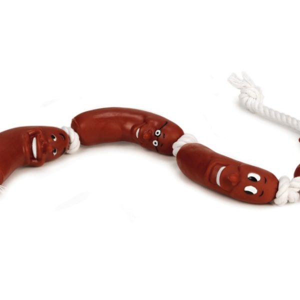 Игрушка в виде забавной связки сосисок. Форма игрушки очень удобна для захвата. Изготовлена из винила. Предназначена для игр с собаками разных возрастов.