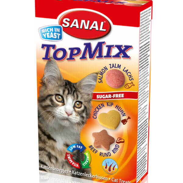Топ Микс – аппетитные и полезные мясные лакомства на основе пивных дрожжей. Комплекс витаминов В способствует укреплению организма и нормализации обменных процессов, обеспечивая здоровье шерсти и кожи, а также лучшей усвояемости кальция, который отвечает за здоровье зубов и костей. Оригинальная форма лакомства в виде сердечек и звездочек помогает справиться с зубным налетом.